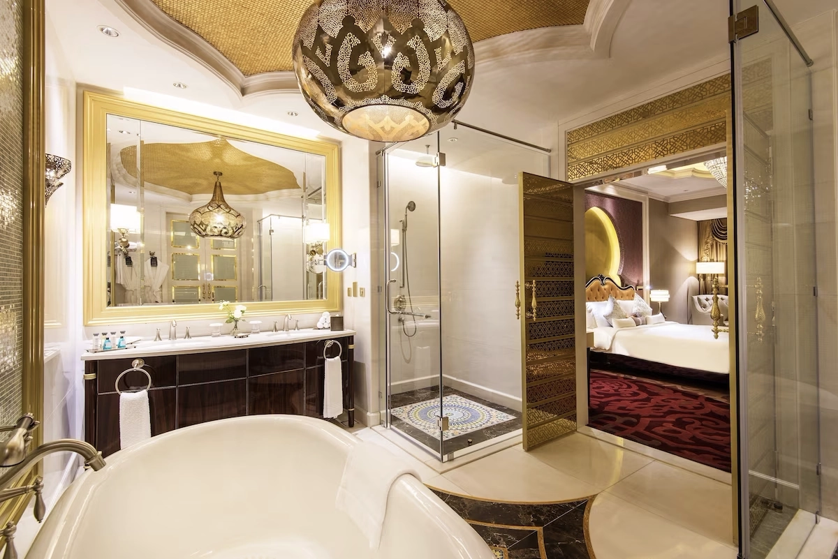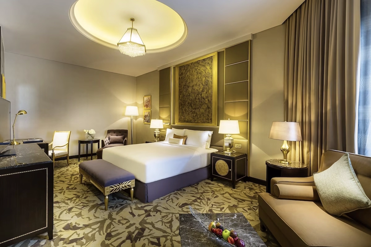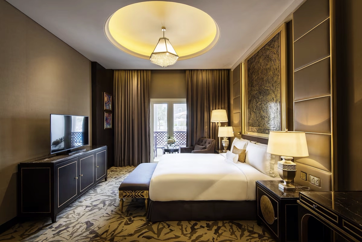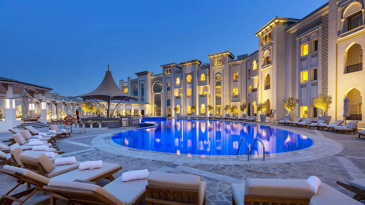 Luxury family-friendly hotel in a shopping district, Ezdan Palace Hotel boasts elegant architecture and a serene atmosphere amidst bustling attractions. Unwind at the poolside bar, indulge in a rejuvenating spa treatment, or explore the on-site shopping mall for a truly memorable stay.