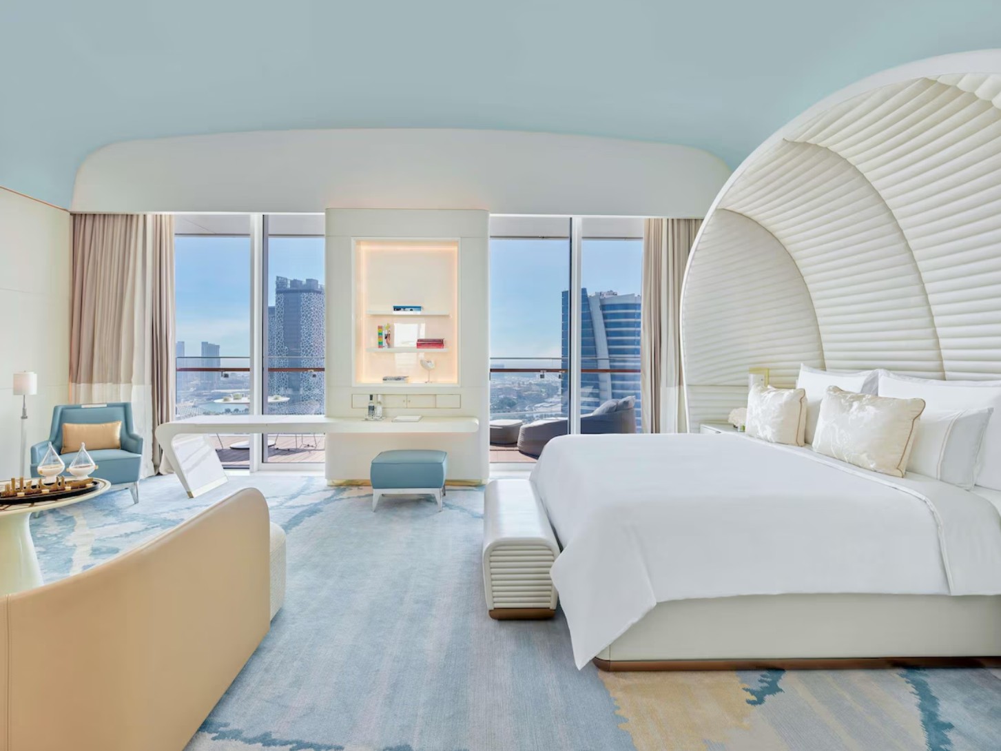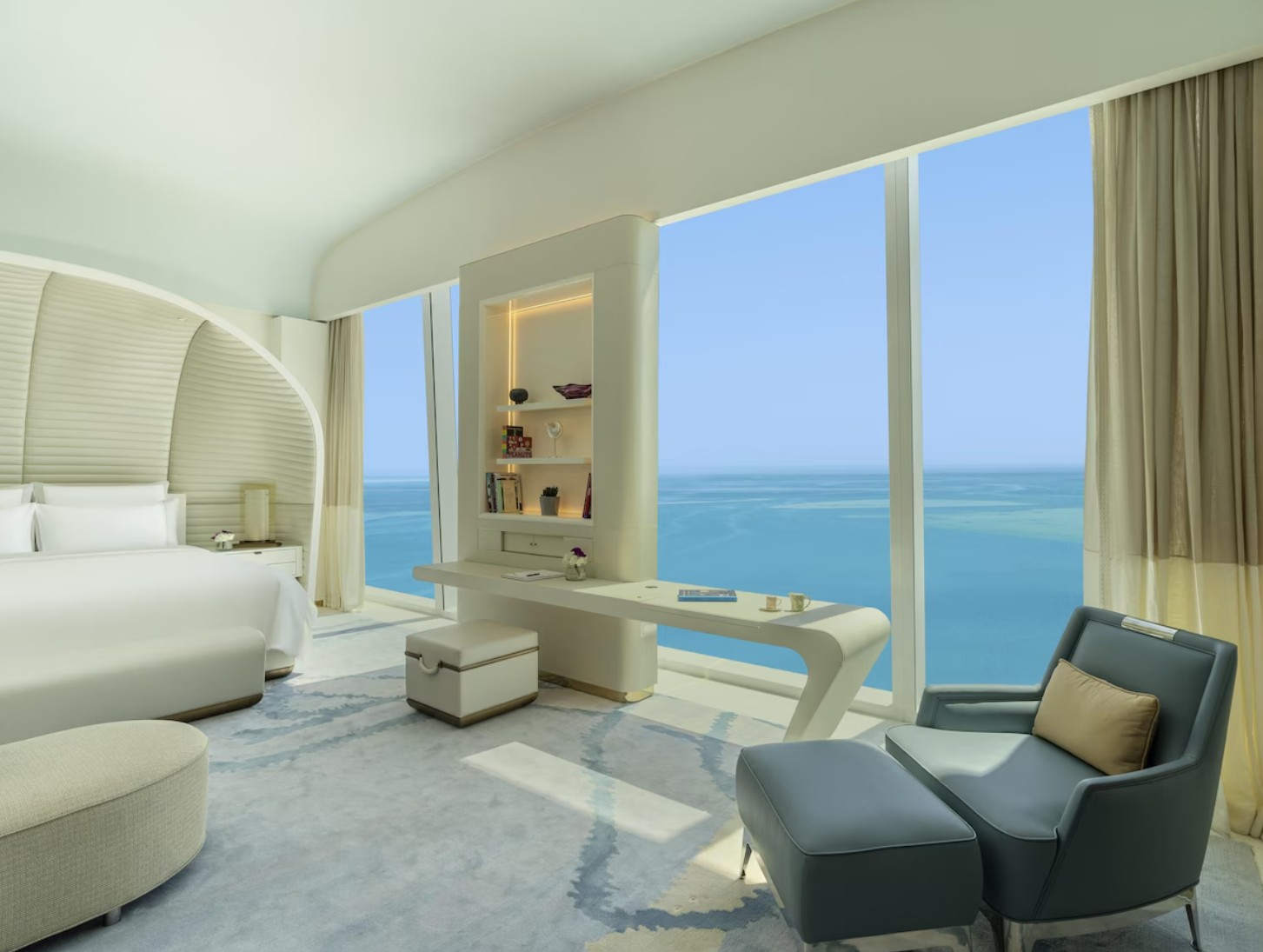 Elegant Accommodations: Fairmont Doha in Doha offers luxurious rooms with sea or city views, air-conditioning, balconies, and modern amenities. Each room includes a private bathroom, bathrobes, and free WiFi.