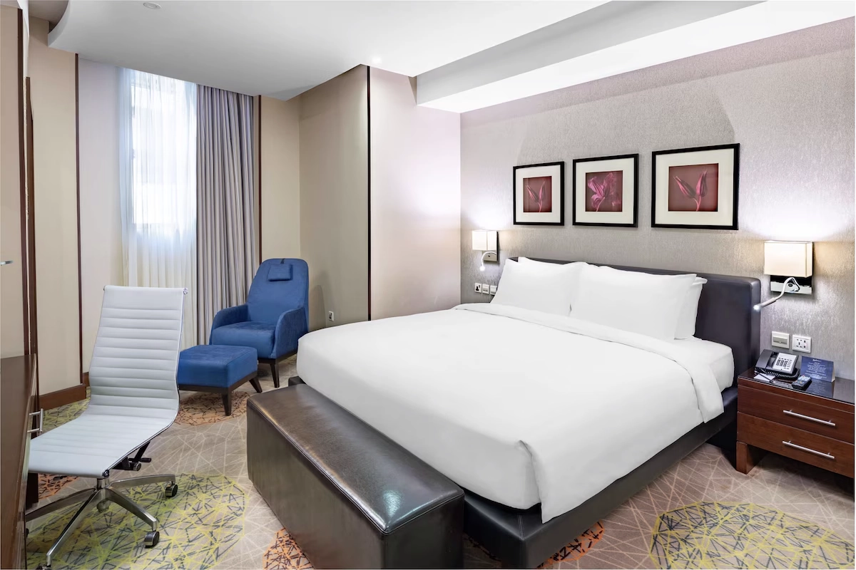Golf enthusiasts, take note. This stylish hotel near Alandalus Mall offers golfing on site and a fireplace in the lobby for chilly evenings. Unwind with a facial or deep-tissue massage at the spa, then dive into an indoor or outdoor pool. A buffet breakfast fuels your day.